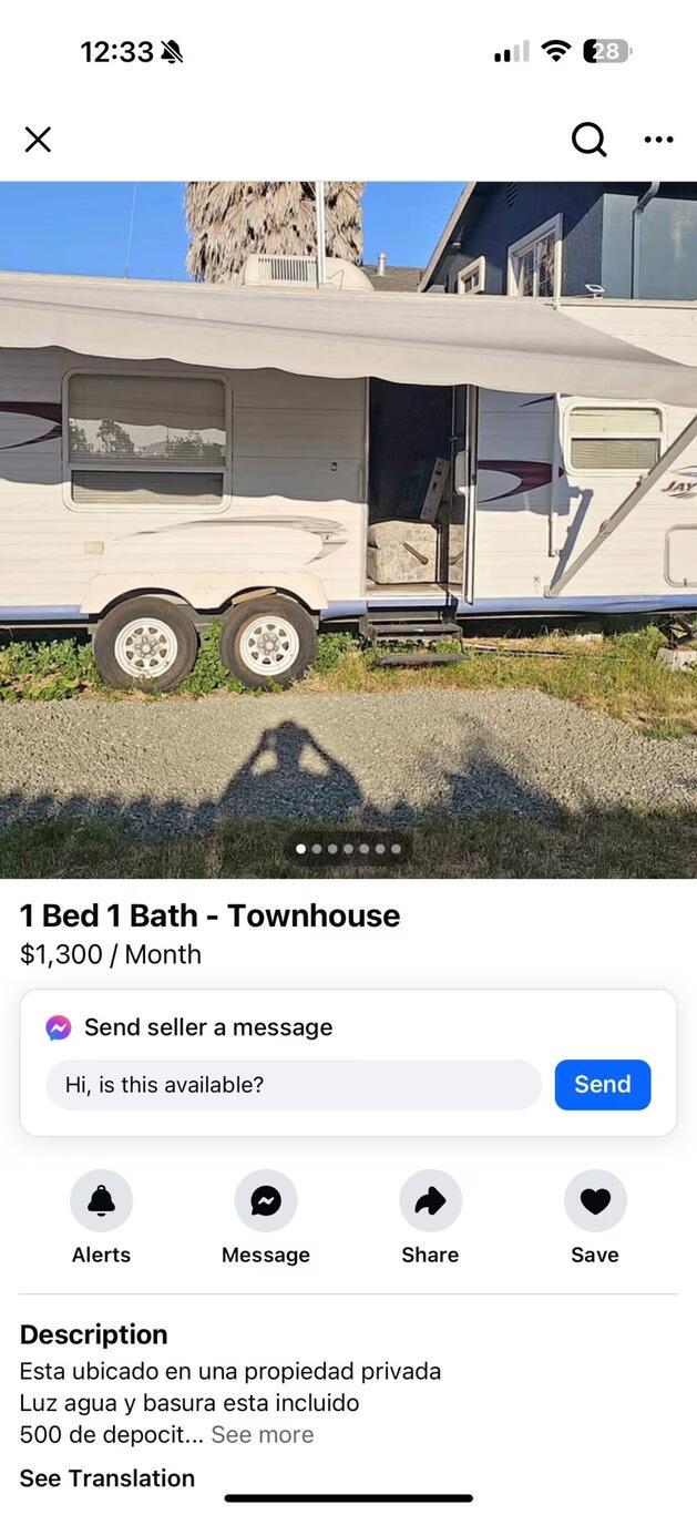 Cohen's office sent Realtor.com photos of Facebook Marketplace listings showing RVs illegally for rent. One had a monthly rent of $1,300 and another for $800. The listings were active, and only a couple of many such listings. Some vanlords may charge even more.