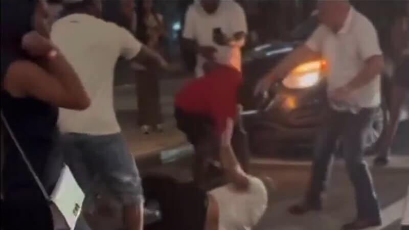 Numerous male and female black youths sucker-punched a middle-aged woman and a man. Others continued to kick or body slam the victims, who were sprawled on their backs and seemingly unconscious.