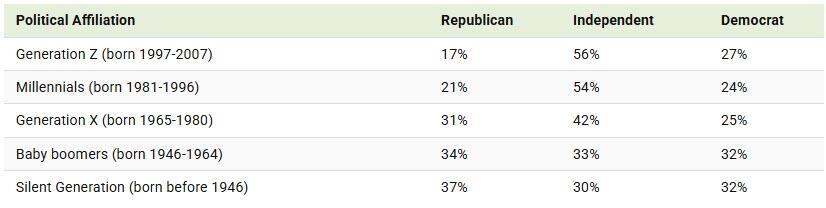 Younger Generations Favor Being Independents