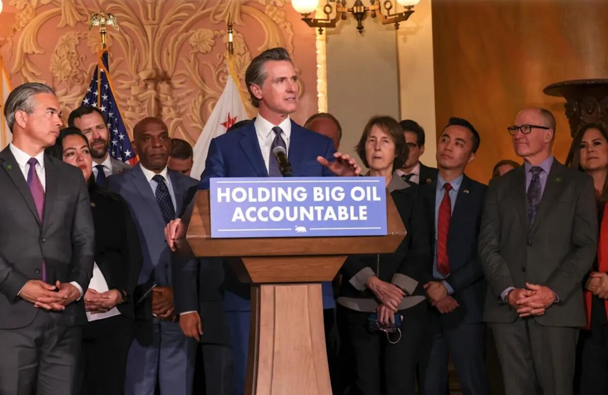 “Gov. Newsom and the Energy Commission have abdicated their responsibility to protect consumers from price gouging,” the group’s president, Jamie Court, said in a statement. “By taking away the hammer of a penalty, the administration will leave consumers vulnerable to the same price spikes and profit spikes that struck in 2022. Gov. Newsom will be as much to blame as the oil refiners for the next price spikes because he left this job unfinished.”