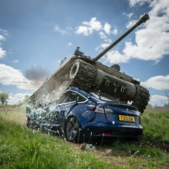 Watch: Anti-Musk Activists Crush Tesla With Tank In Politically-Motivated Stunt