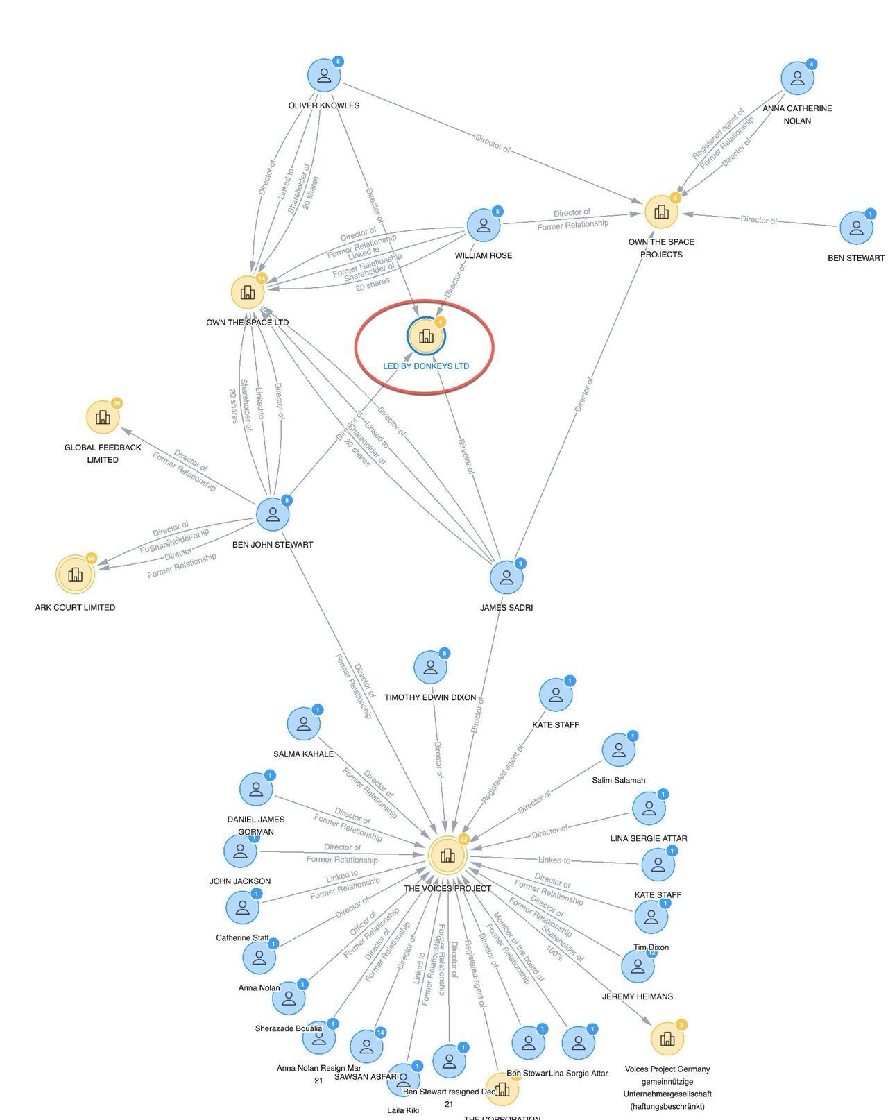 The latest public records data in the UK shows that Led By Donkeys has four directors: Ben Stewart, James Sadri, Oliver Knowles, and Will Rose.