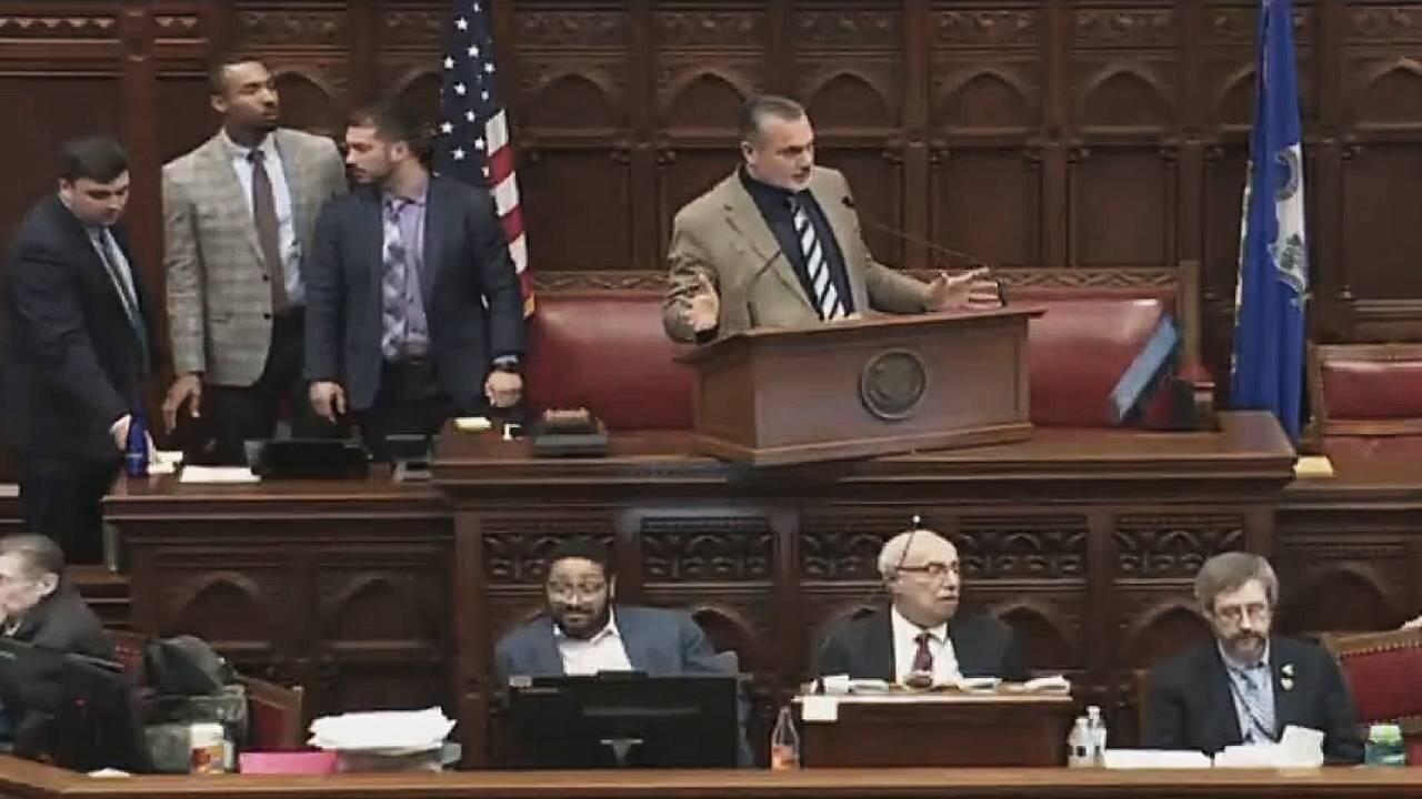 A Connecticut lawmaker was admonished for reading aloud from a pornographic book that is available to children in school libraries in the state.