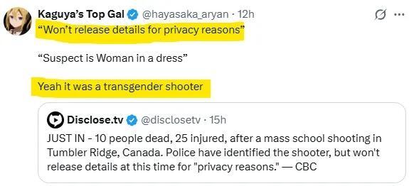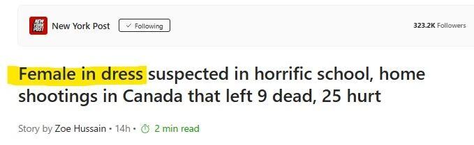 Social media, as always, was on it. Online sleuths quickly dug up the shooter’s past, online posts, behavioral history, and hobbies—some dark, some disturbing, some tragically predictable for a young person spiraling into violence. They discovered that he was into guns, liked to wear lipstick, and described himself online as MtF, trans slang for someone making the switch from male to female. (I could probably stop there.) They found old Facebook posts written by his mother—who was allegedly one of the victims, along with one of her three other children—asking a private parenting group for advice on dealing with a child who “is angry, mean, and territorial,” “hurts his siblings” and “covers things up and lies.” They unearthed evidence that the mom was also seeking help for his ADHD diagnosis and that the killer was in fact, taking psychiatric drugs. They pointed out, time and again, that Canada has some of the strictest gun laws on the planet, a detail that somehow didn’t stop a deranged lunatic from getting his hands on a weapon and opening deadly fire. Go figure.