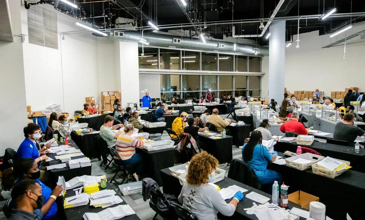 Vote counting in Georgia starts by law on election day. Fulton County had more than half a million ballots to tabulate—almost 90 percent cast early or by mail. The result was announced several days later: Biden won the county by 26-point margin.