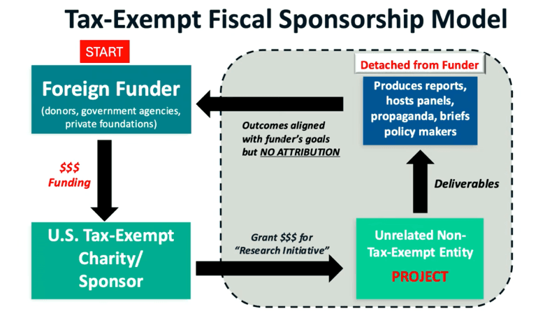 Sutherland tells the committee that European entities are funneling money into US nonprofits to push a radical left-wing agenda
