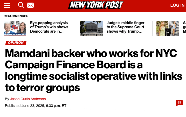 A recent New York Post opinion piece penned by One City Rising co-founder and strategist Jason Curtis Anderson exposed a troubling connection behind Mamdani's rise: one of his key backers worked for the NYC Campaign Finance Board and is a longtime socialist operative with alleged ties to extremist and terror-linked groups.