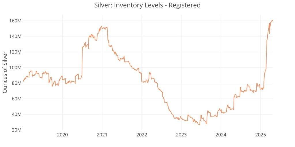 Silver inventories have continued to increase unlike gold which has leveled off.