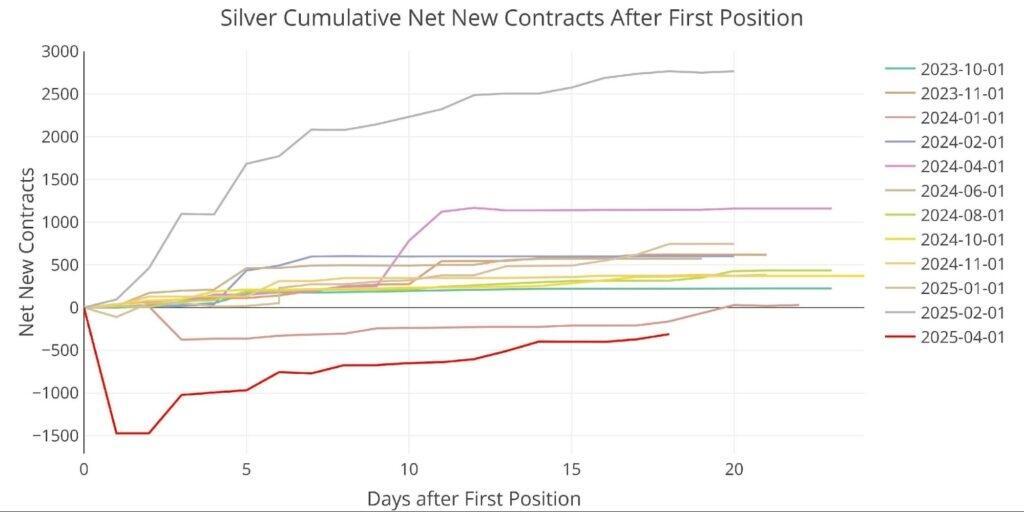 Silver is a minor month in April. While delivery volume was elevated (second only to February), it was a big step down from where it was in April.
