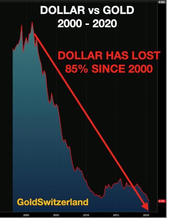 But imagining a dying dollar (which has already lost 99% of its purchasing power against a milligram of gold since 1971) is almost impossible to do, especially a dollar as critical to global trade and finance as the world’s reserve currency.