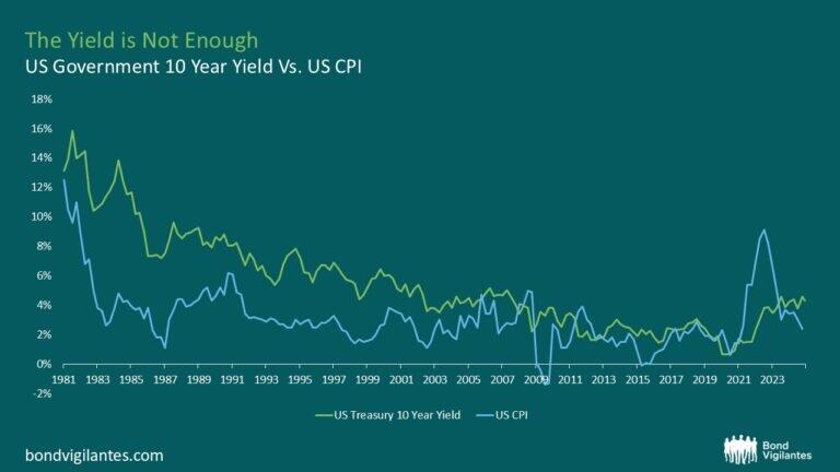 Below is a graph that is going to come as no surprise to the contemporary Bond Vigilante. It shows an observable correlation between bond yields and CPI. When inflation goes up, bond yields go up. When it comes down, bond yields come down. Nothing exciting.