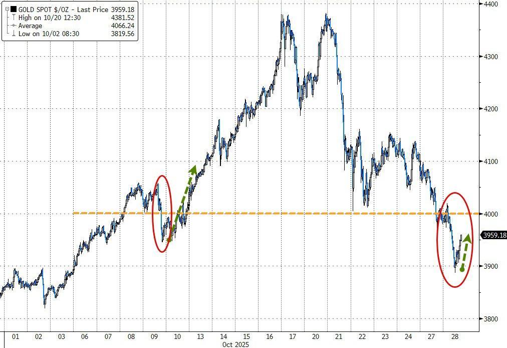 Retail & Central Bank 'Dip-Buyers' Emerge As Gold Drops Below $4000