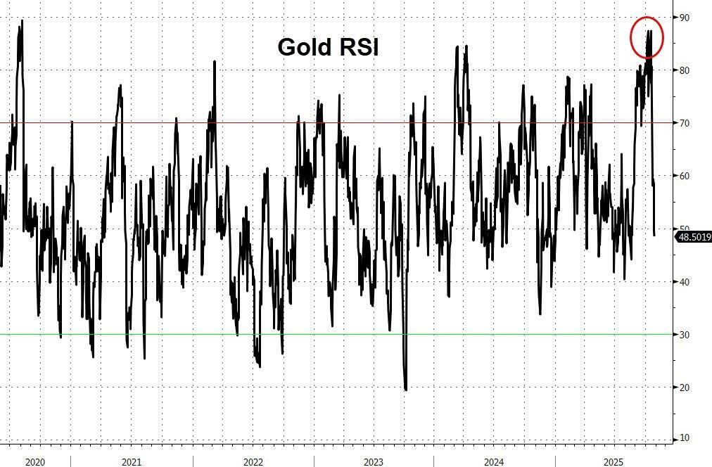 Gold is “an overcrowded trade that’s overextended by every technical metric,” Nicky Shiels, head of research at precious metals refiner MKS Pamp SA, wrote in early October, getting ever more overbought.