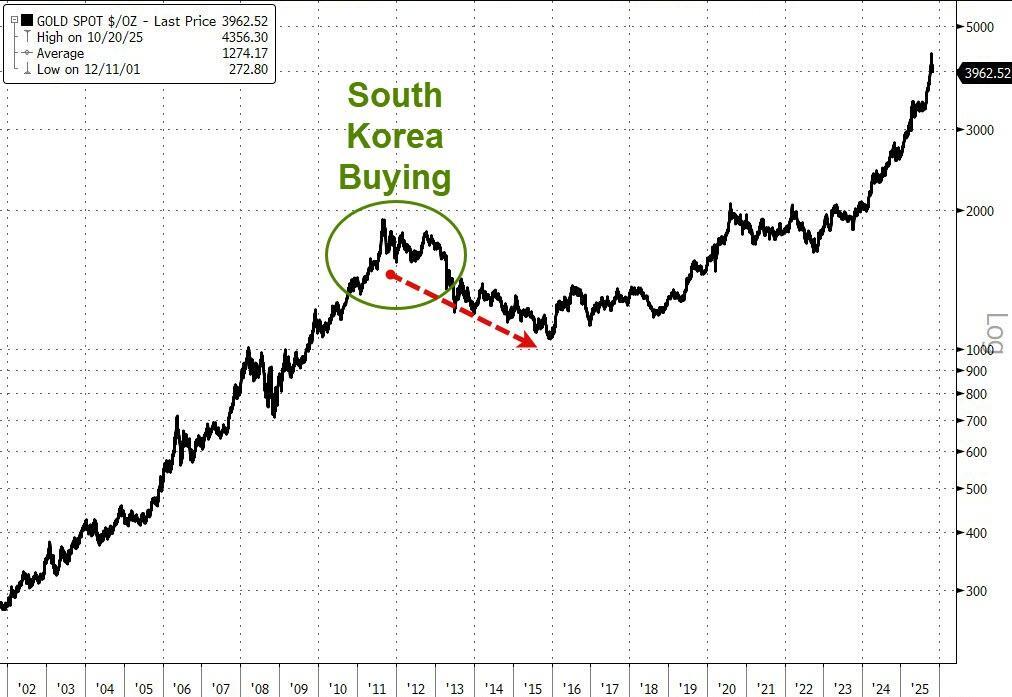 Bloomberg reports that South Korea’s central bank is weighing plans to add to its gold reserves for the first time in more than a decade.