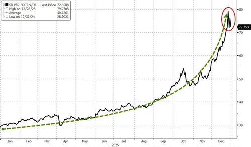Finally, as we detailed earlier in the week, China is set to tighten controls on silver exports from Thursday, expanding restrictions on the once-ordinary metal critical to the U.S. industry and defense supply chains.