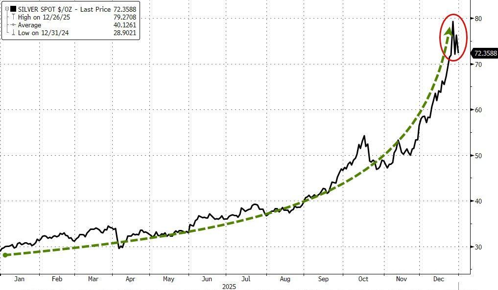 As we detailed earlier in the week, the immediate catalyst for silver's sudden slump was not a single factor but a multitude that cracked the massively overbought precious metal (including export restrictions, US and China margin hikes, ETF flows, etc).