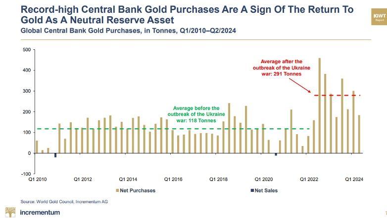 Average central bank gold stacking has skyrocketed from 118 tons (pre-2022), to over 290 tons per/bank/year post weaponization.