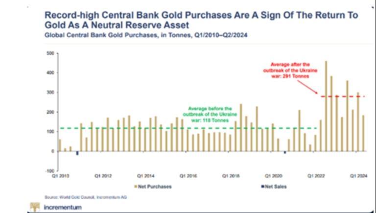 Such debt and currency dynamics are now fully understood by the global financial whales, which is why central banks have been net stacking gold over USTs since 2014 and nearly tripling their physical gold purchasing since the weaponization of the USD in 2022: