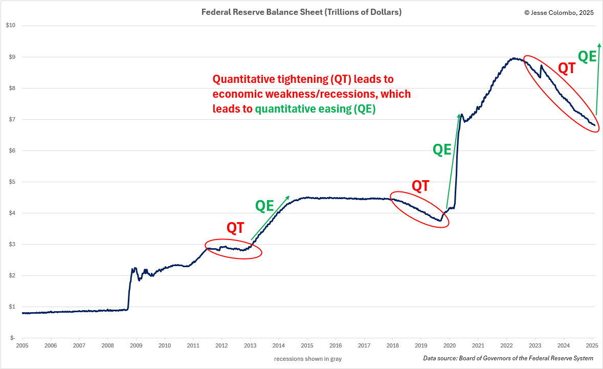 A recession would be extremely bullish for both silver and gold, as the U.S. Federal Reserve and government would respond with aggressive measures to support the economy. This would include slashing interest rates back to zero—and even into negative territory—while abruptly ending the current quantitative tightening (QT) policy and reviving quantitative easing (QE). In doing so, they will digitally create hundreds of billions—eventually trillions—of new dollars in a desperate attempt to stabilize financial markets and the broader economy.
