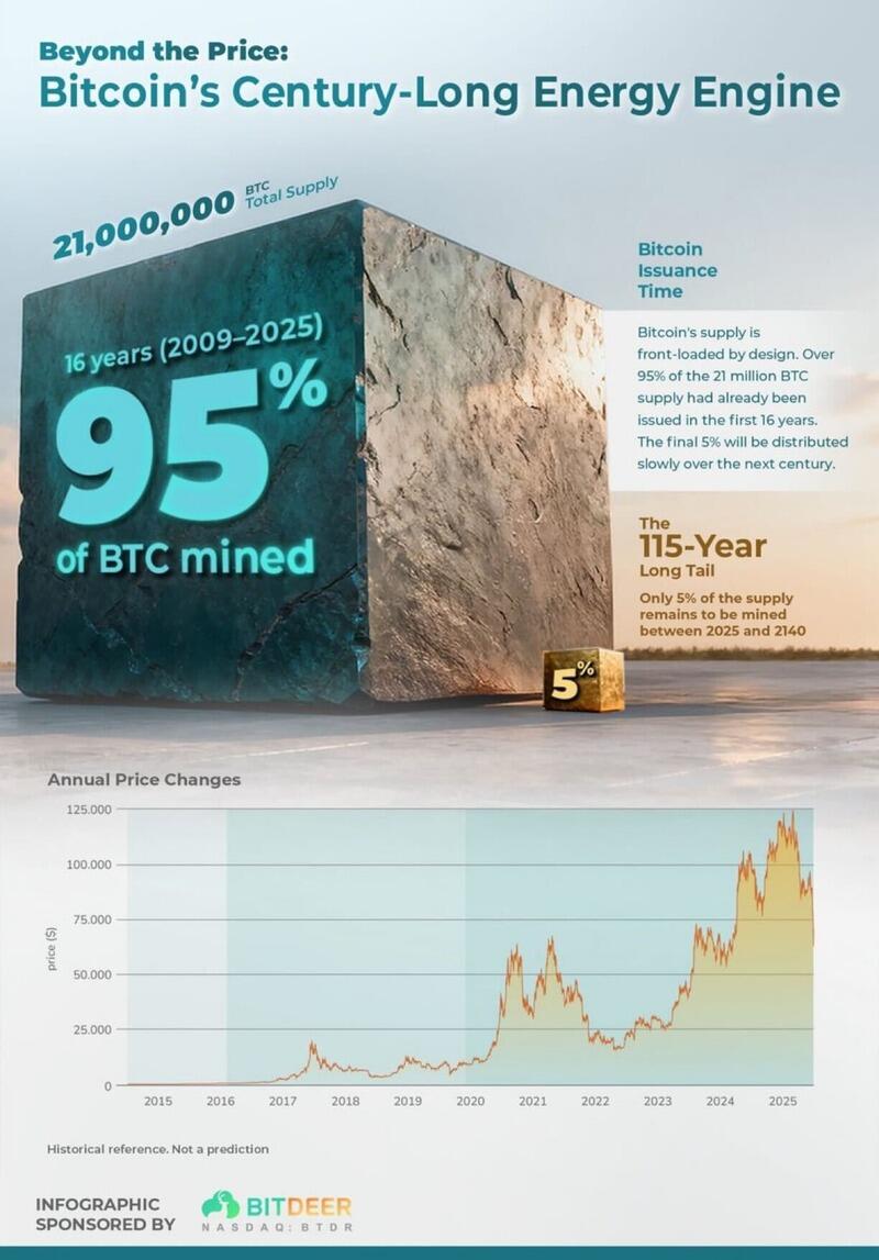 The deeper story is structural: while markets swing wildly, Bitcoin’s issuance is pre-determined. The schedule does not react to demand. It does not respond to policy. It does not react to market conditions. It simply continues, halving after halving, decade after decade. And as issuance declines, other factors become increasingly important: Energy efficiency. Power access. Infrastructure durability.