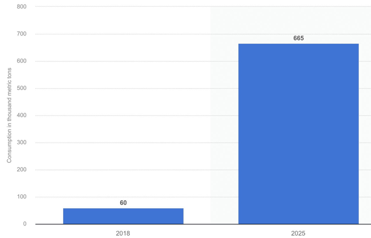 Figure 1: Global Demand for Nickel in Electric Vehicle Batteries from 2018 – 2025