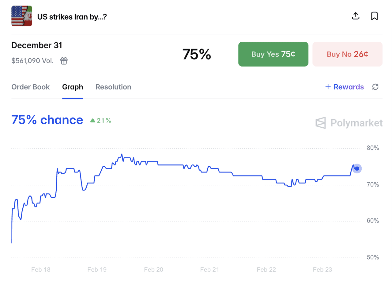 Disclaimer: Nothing in The Oracle is financial, investment, legal or any other type of professional advice. All odds are time sensitive and subject to change. Anything provided in any newsletter is for informational purposes only and is not meant to be an endorsement of any type of activity or any particular market or product. Terms of Service on polymarket.com prohibit US persons and persons from certain other jurisdictions from using Polymarket to trade, although data and information is viewable globally