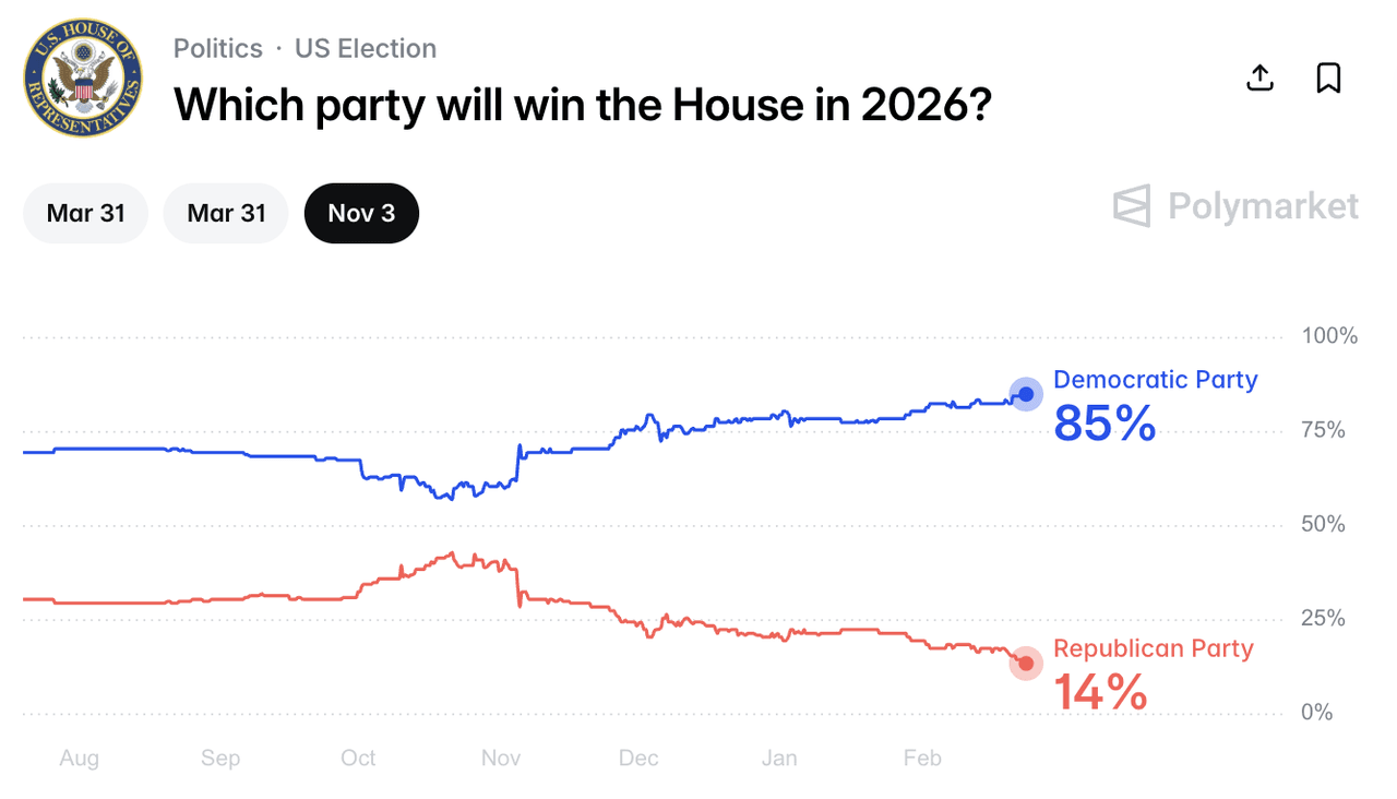 Polymarket has Democrats winning the House at 83%. Is that too low given the history?