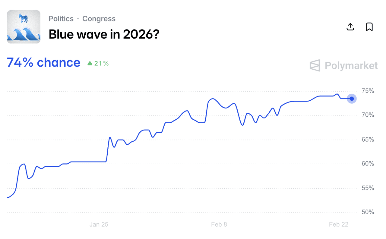 Polymarket has "Blue Wave" (Dems win House plus 49 Senate seats) at around 60-70%. What's your number?