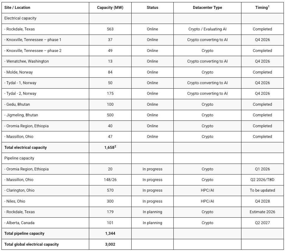 As the company builds out more power capacity by leveraging Bitcoin’s unique economics, Bitdeer has been entering the AI infrastructure space. Bitdeer’s sites in Knoxville, TN, Wenatchee, WA, and Tydal, Norway, which account for 275 megawatts (MW) of power capacity, are all expected to be fully converted into AI and high-performance computing by the end of the year. Over 1 GW is expected to be dedicated to AI by the end of 2028, which includes a 570 MW site in Clarington, OH.