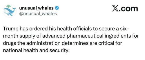 “President Trump on Wednesday ordered his health officials to secure a six-month supply of advanced pharmaceutical ingredients for drugs the administration determines are critical for national health and security.