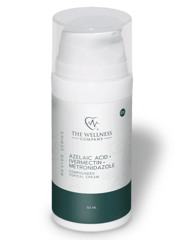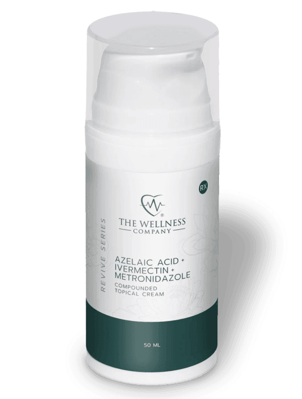 The Wellness Company’s Ivermectin cream is a dermatologist-formulated topical treatment combining Ivermectin with two other FDA-approved ingredients: Azelaic Acid and Metronidazole. Our Ivermectin Cream targets redness, inflammation, and irritation caused by rosacea, lice, acne, and other inflammatory skin conditions.