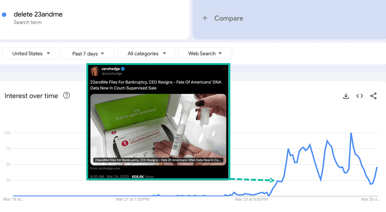Shortly after we published "23andMe Files for Bankruptcy, CEO Resigns — Fate of Americans' DNA Data Now in Court-Supervised Sale," the internet followed our lead on Monday morning and asked the same question. More importantly, 23andMe customers did too—frantically searching for how to delete their genetic data before a private equity firm scoops it up in a court-ordered sale.