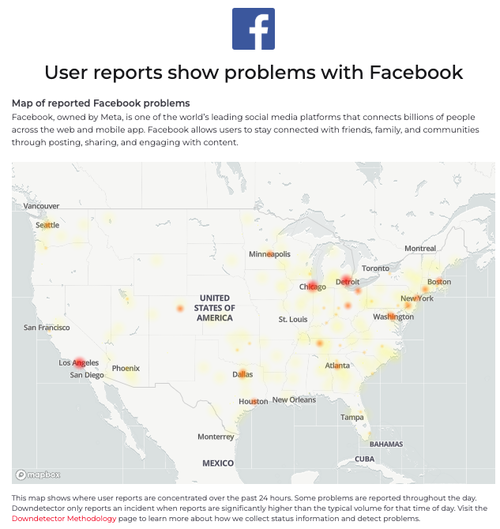 Besides Facebook, Downdetector users report TikTok, Bluesky, Instagram, and Facebook Messenger are also experiencing outages or disruptions.