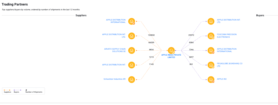For more color on Apple's trading partners and latest shipments, the supply chain platform Sayari shows Apple India Private Limited's activity, sourcing mostly from China...