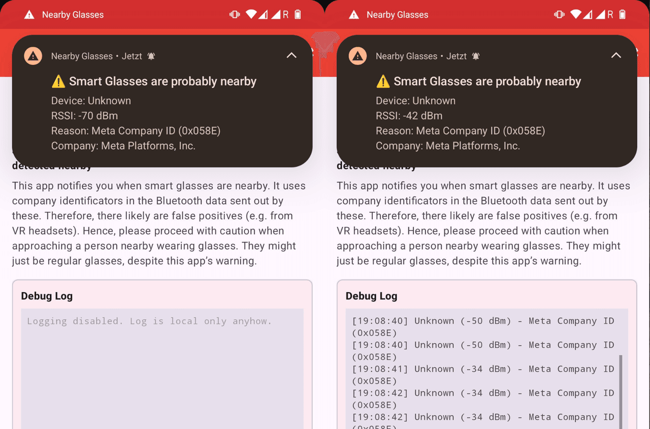 As first reported by tech blog 404 Media, the new smartphone app Nearby Glasses scans the Bluetooth signature emitted by smart glasses and sends a push notification to the user if a device is detected nearby.