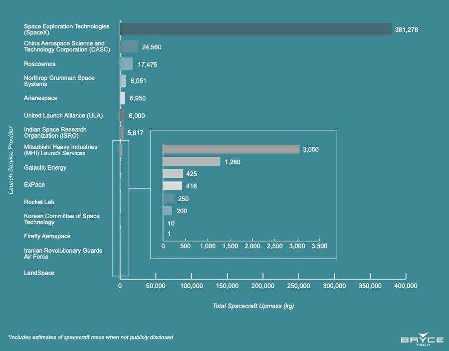 SpaceX's third quarter 2024 launch report showed the US leading the global space race, launching 84% of all mass to orbit globally. This is 15 times all Chinese launches combined in the quarter, according to data from BryceTech.