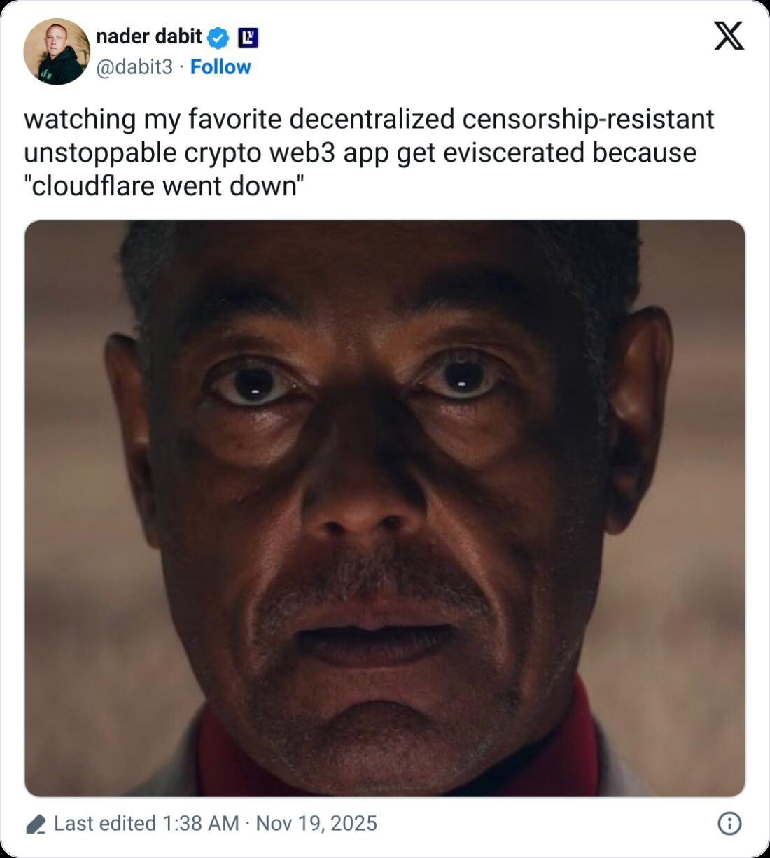 Its outage took out the websites for Coinbase, Blockchain.com, Ledger, BitMEX, Toncoin, Arbiscan, and DefiLlama, as well as X and ChatGPT, leading some crypto commentators to remark on the crypto industry’s reliance on centralized systems, some of which also went offline when Amazon Web Services suffered a network outage last month.