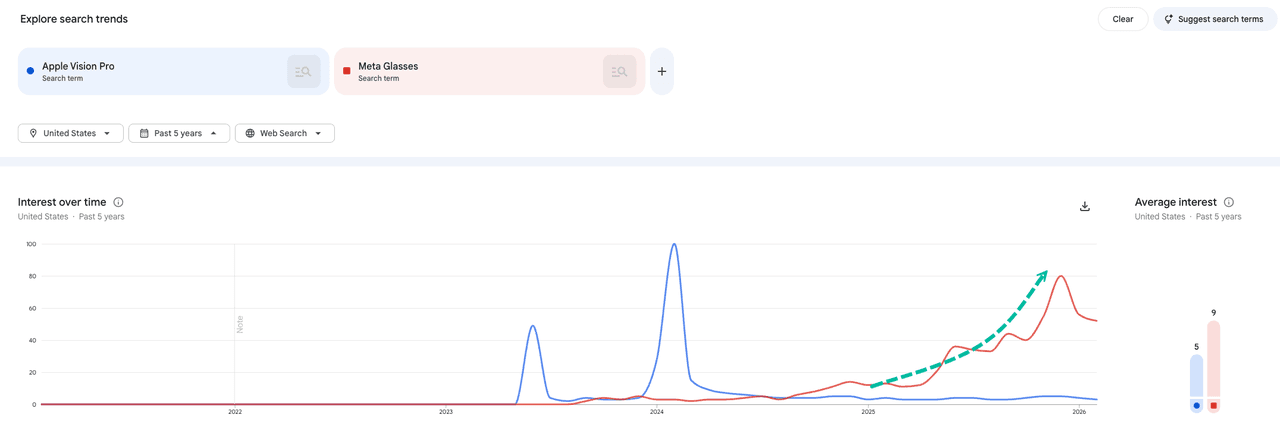 For some time, we've been on the right side of this call: Meta's smart glasses are the clear winner versus Apple Vision Pro for one simple reason: they're built for daily life. The value proposition is obvious too. They're priced only a notch above high-end Ray-Bans, yet drastically cheaper than the goofy-looking $3,500 Vision Pro headset.