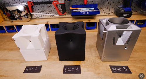 Days ago, Rober released the "Glitterbomb 3.0" in a YouTube video, which he explains holds more glitter, has four canisters of fart sprays, added LED strobes, wireless charging on a doormat, and handles laced with glue.