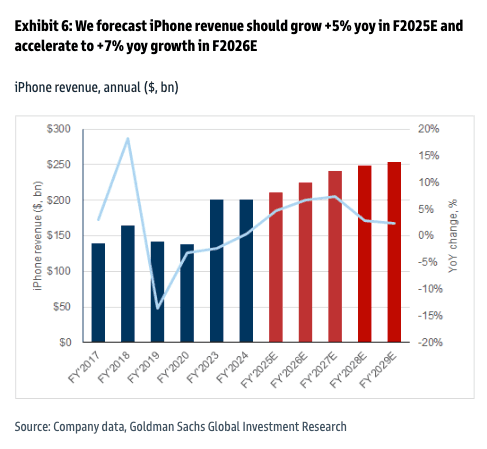 He stated, "We reiterate our Buy rating on AAPL and forecast iPhone revenue to grow +5% yoy in F2025E before accelerating to +7% yoy growth in F2026E."