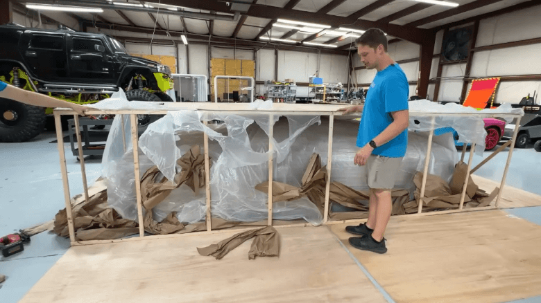 The YouTuber and his pals then realized the vehicle was entirely made of foam.
