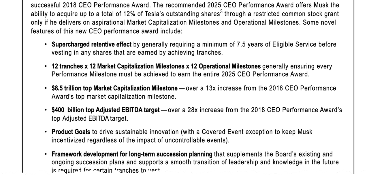 Tesla's proxy filing highlights some novel features of this new CEO performance award: