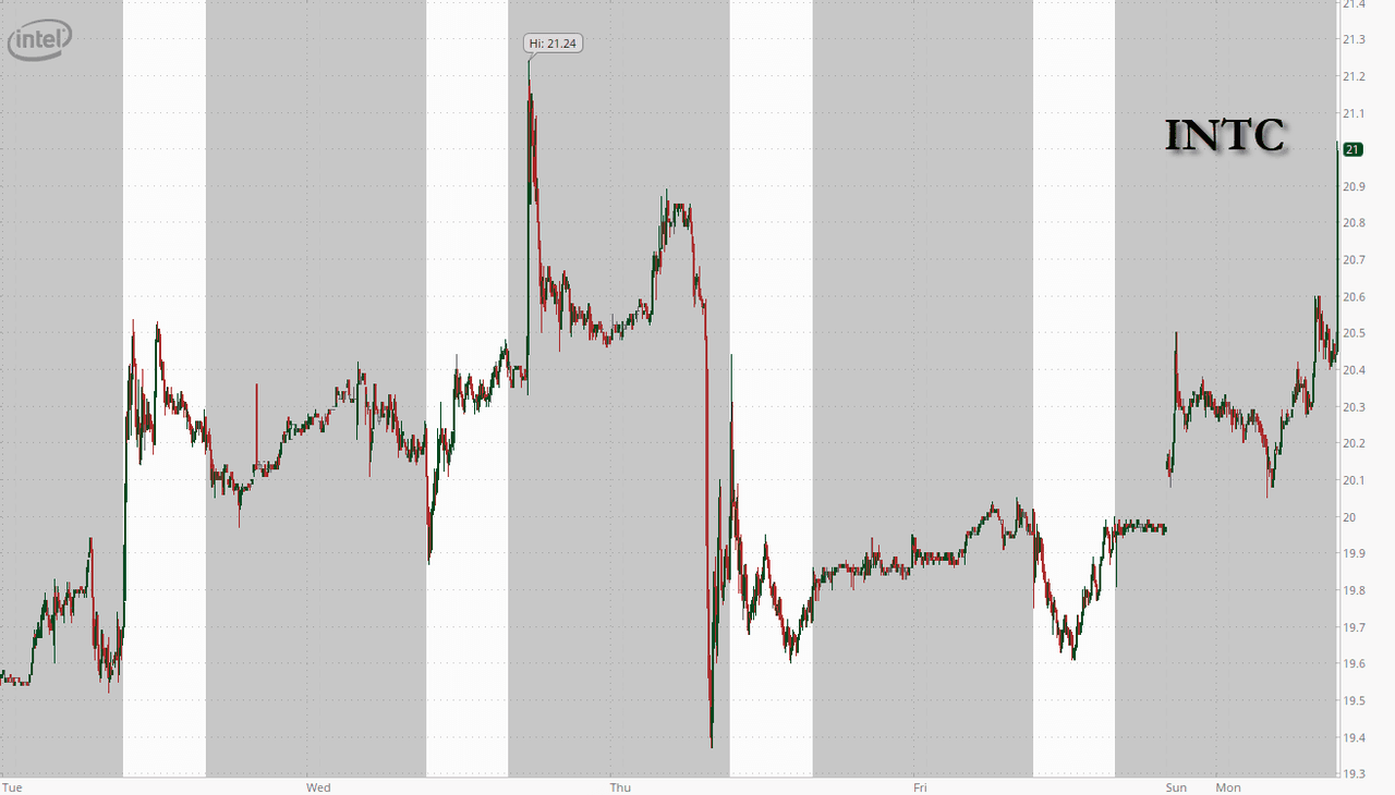 Update 0900EST: Shares of Intel are up about 5% at the cash open on Monday following the announcement that the company's CEO will head to the White House to speak with President Trump today.