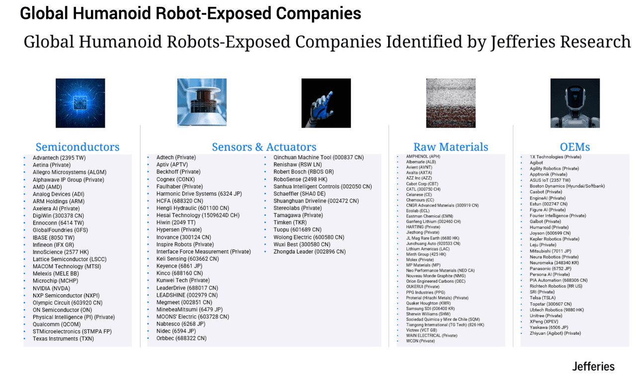 The analysts provided clients with a company breakdown of the most critical companies supplying components to humanoid robots, outlining where clients may be positioned to get the most exposure as the industry gears up for increased deployments