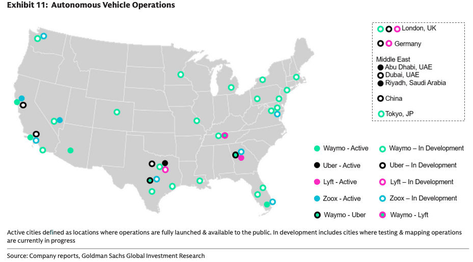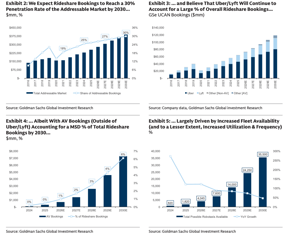 Last month, Goldman analyst Eric Sheridan provided clients with an update on the North American autonomous-vehicle (AV) rideshare market, which is quickly gaining momentum. Read the report here.