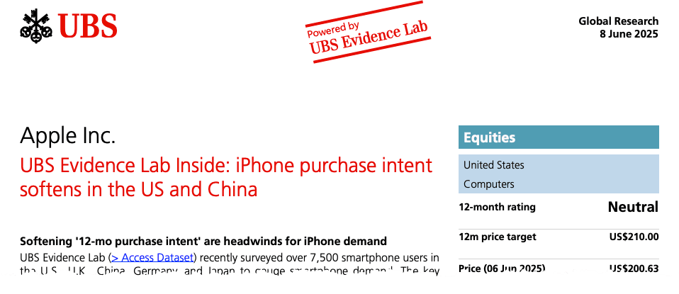 UBS Warns On Slumping iPhone Demand As WWDC 2025 Kicks Off