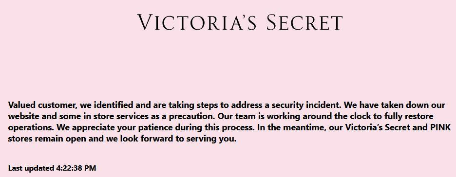 Victoria's Secret Exposed In 'Security Incident' As Site Goes Offline For Days, Shares Down 6.9%