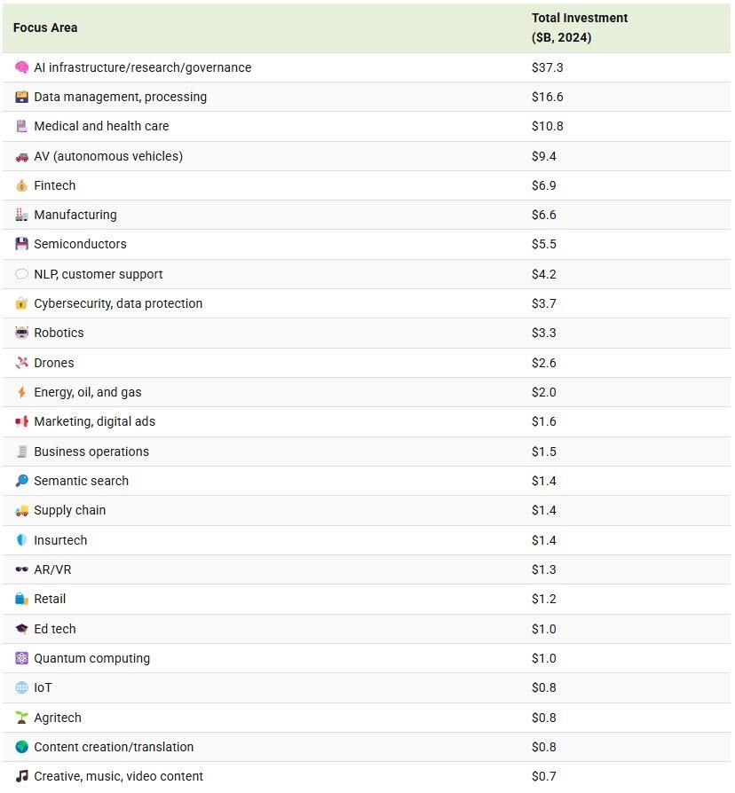 Breaking down private AI investment by focus area reveals the top sectors that attracted the most capital in 2024.