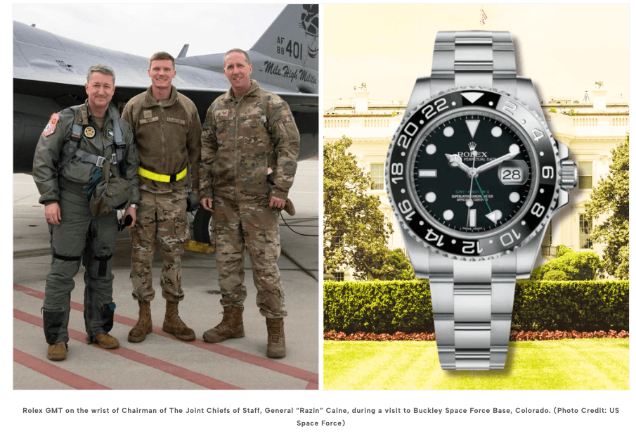 This additional piece cements him as a certified watch nerd. Of note, Caine served as the associate director for military affairs (ADMA) at the CIA from 2021 to 2024, and it's safe to say: “He’s one of us.”