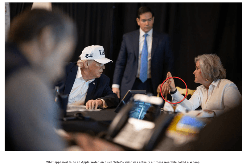 After the White House released photos of senior officials monitoring military operations in Iran, some observers were quick to claim that Chief of Staff Susie Wiles was wearing an Apple Watch or other smartwatch, which could be a potential security issue.